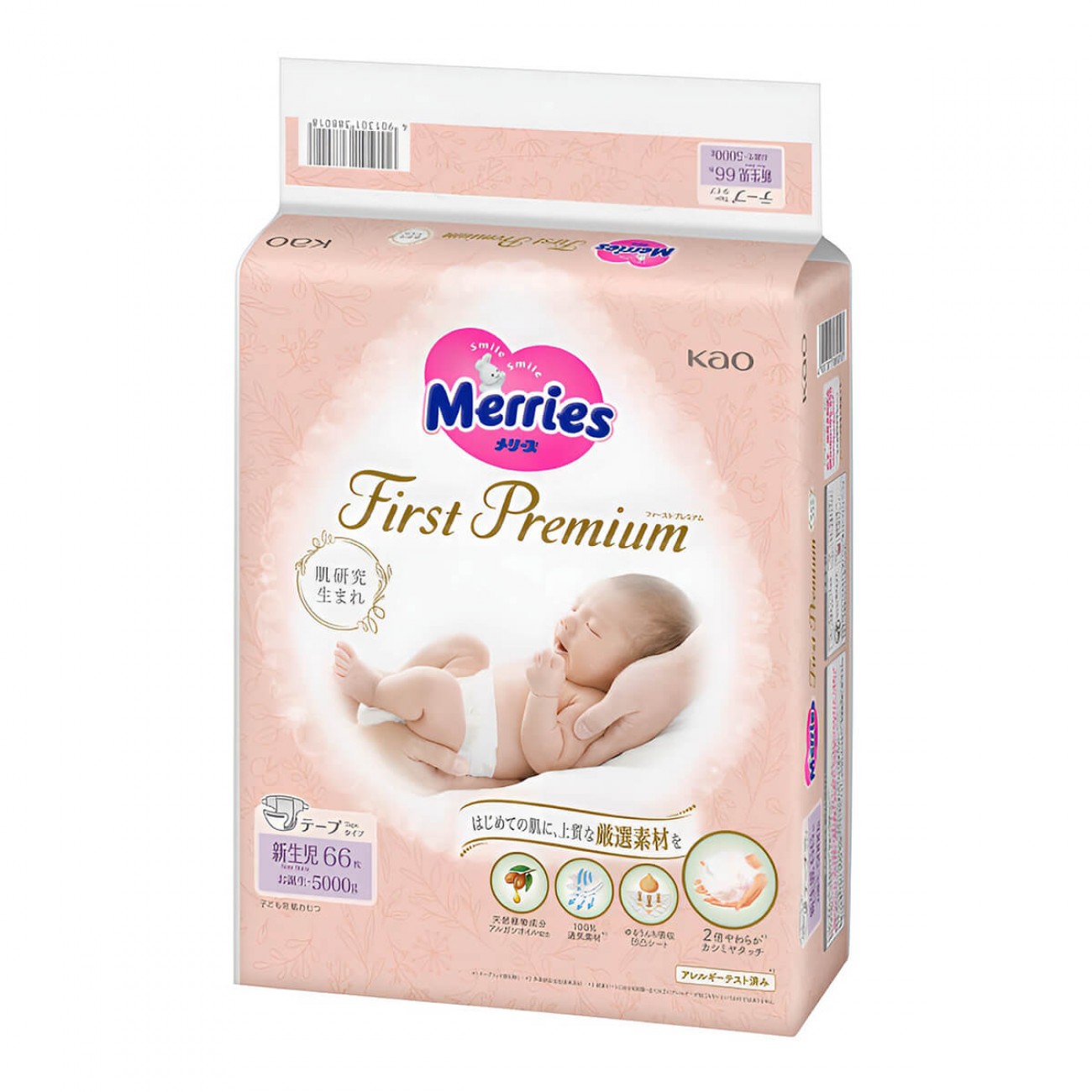 Опис Підгузки Merries First Premium, NB, 0-5 кг, 66 шт (4901301388018)