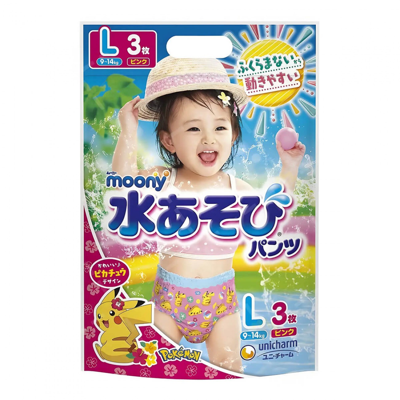 Опис Підгузки-трусики для плавання Moony розмір L, для дівчаток, 9-14 кг, 3 шт (4903111124428)