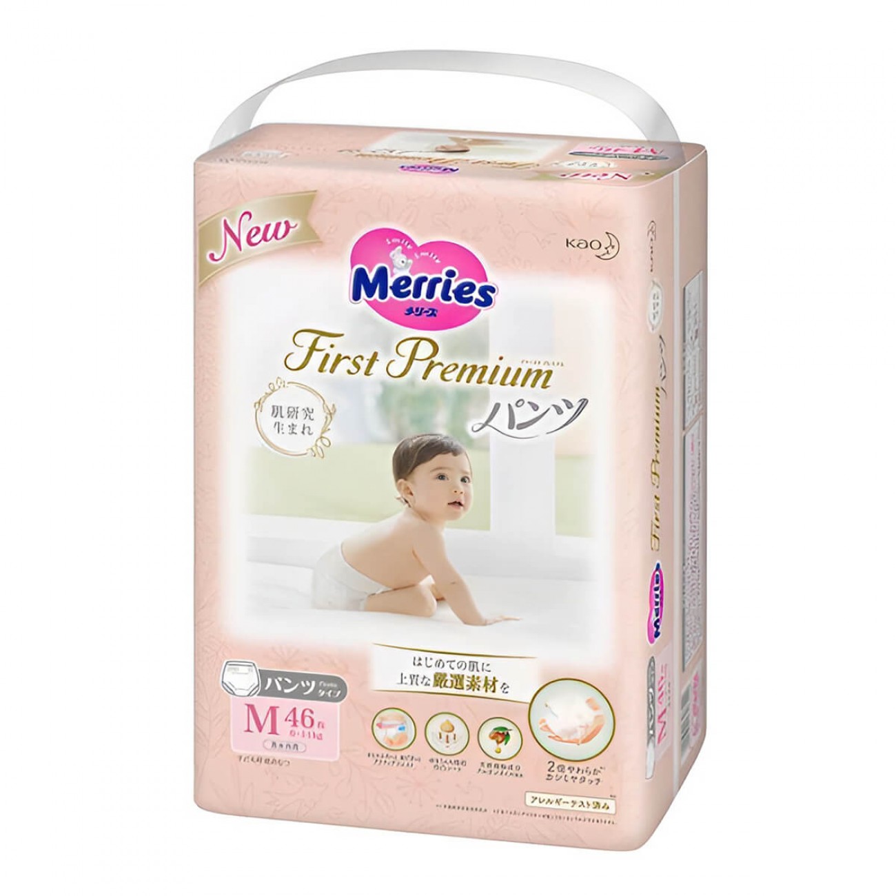 Опис Підгузки-трусики Merries First Premium, розмір M, 6-11 кг, 46 шт (4901301396549)